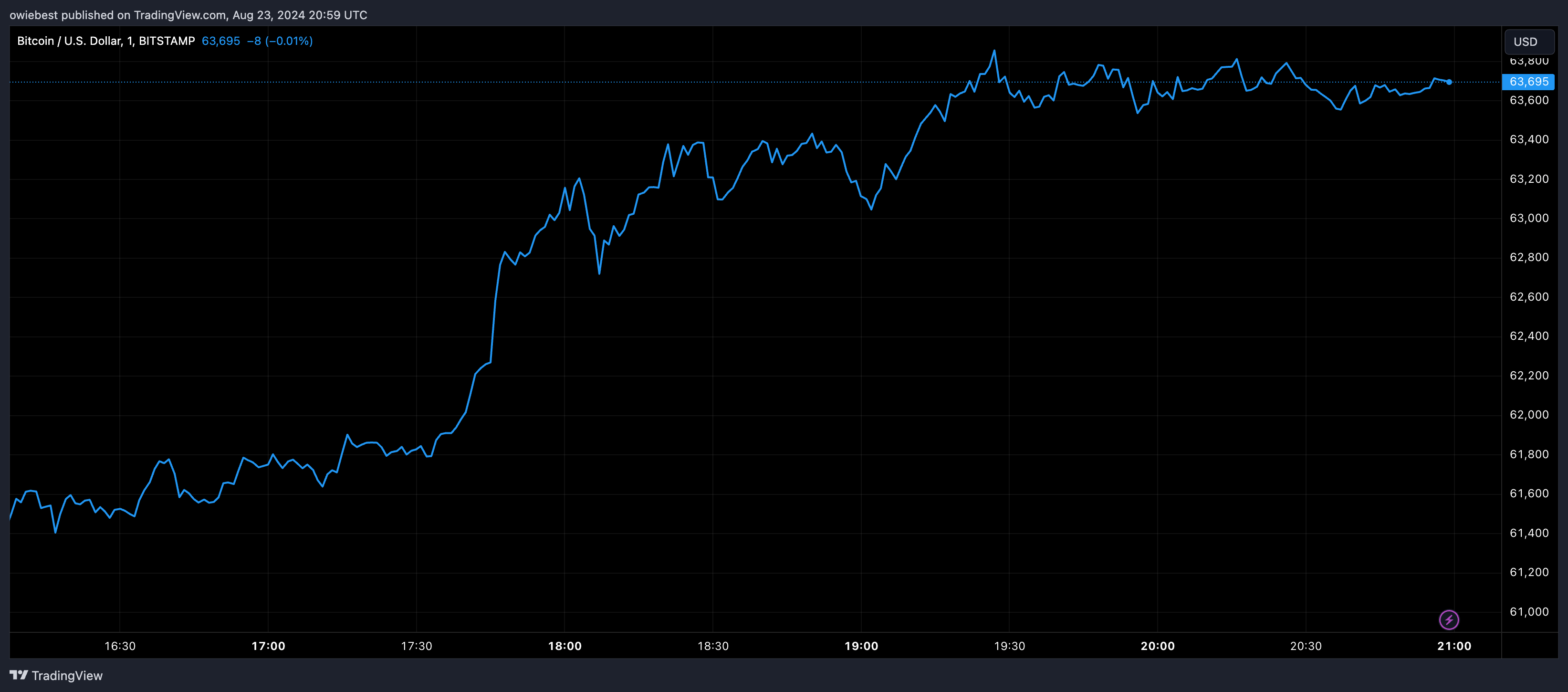 BTC bulls push toward $64,000 | Source: BTCUSD on Tradingview.com