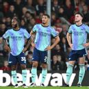 “With 10 men we showed a lot of character and personality to stay in the game. The big chance was [Gabriel] Martinelli’s and the keeper read it and made a great save and one minute later, normally a routine we are so strong at, has done us.”