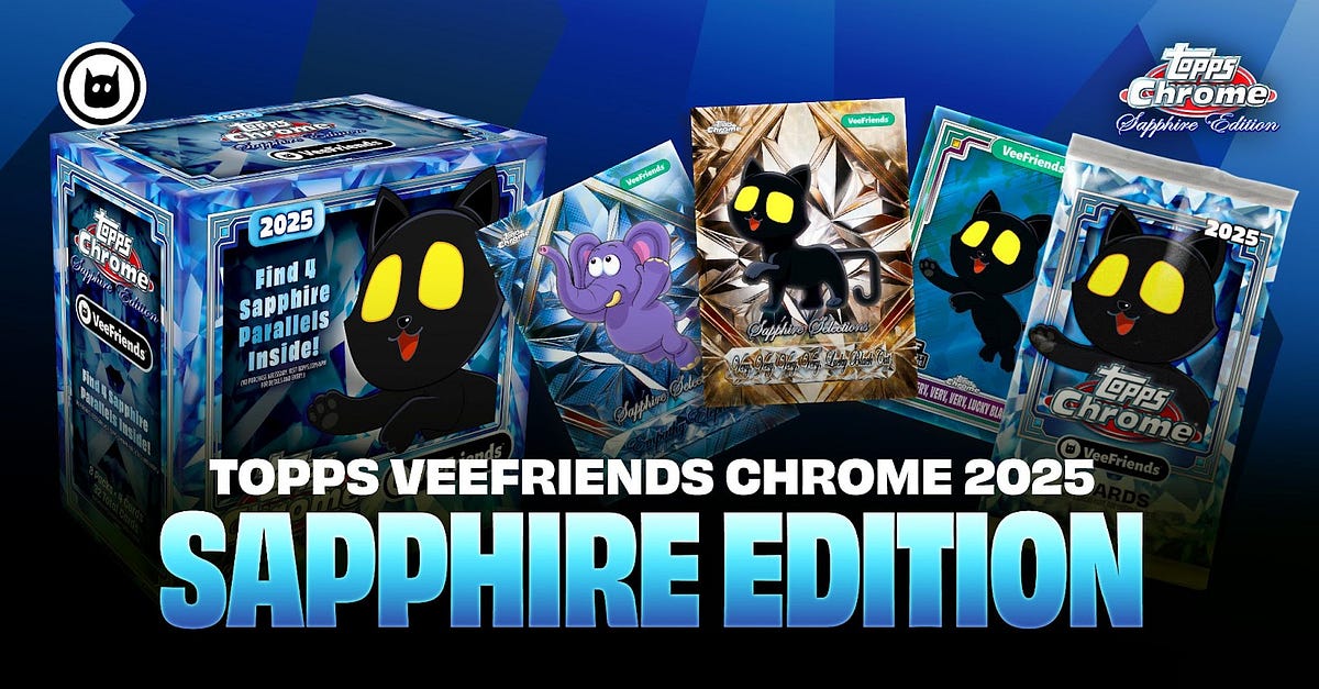From Mickey Mouse and Darth Vader to Lewis Hamilton and Wolverine, Topps Sapphire has redefined what high-end card collecting looks like. With VeeFriends now joining the Topps Sapphire lineage, collectors got a fresh take on the 100-card VeeFriends Chrome 2025 base set — rendered in stunning Sapphire tech with exclusive parallels and one insert set designed just for this drop.
