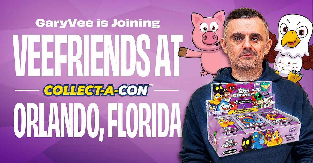 Join us at the VeeFriends booth at Collect-A-Con Orlando for exclusive products, live programming, and hands-on experiences for all ages. Whether you’re chasing rare hits, collecting stickers, or hoping to meet GaryVee in person, this is your chance to immerse yourself in the VeeFriends universe.